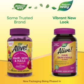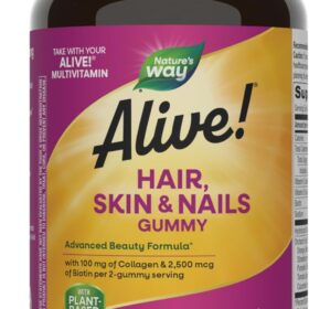 Nature’s Way Alive! Hair, Skin & Nails Gummies, Advanced Beauty Formula*, with Biotin and Collagen, Strawberry Flavored, 60 Gummies (Packaging May Vary)