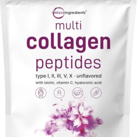 Multi Collagen Peptides Powder, 16 Oz – Hydrolyzed Protein Peptides | Type I,II,III,V,X with Hyaluronic Acid, Biotin & Vitamin C – Unflavored – Keto & Paleo Friendly, Ez Mix in Drinks