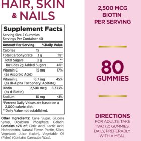 Nature’s Bounty Optimal Solutions Hair, Skin & Nails Vitamin Gummies with Biotin, 2500 mcg, Strawberry, 80 Count