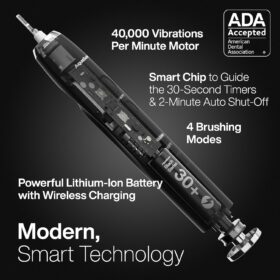 Aquasonic Black Series Ultra Whitening Toothbrush ADA Accepted Electric Toothbrush- 8 Brush Heads & Travel Case 40,000 VPM Electric Motor & Wireless Charging – 4 Modes w Smart Timer