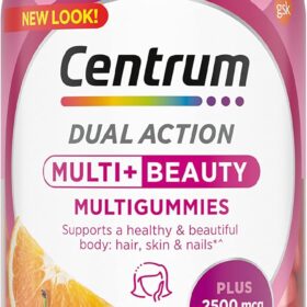 Centrum MultiGummies Multi+ Beauty Dual Action Multivitamin, Specially Designed with Biotin for Healthy Hair, Skin and Nails, Cherry/Berry/Orange Flavors – 100 Count