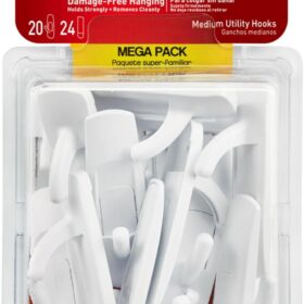 Command Medium Utility Hooks, 20 Hooks and 24 Command Strips, Damage Free Hanging Wall Hooks with Adhesive Strips, No Tools Adhesive Hooks for Hanging, Organization and Storage, Holds up to 3 lb