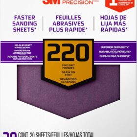 3M Advanced Sandpaper, 20 Sheets, 220 Grit, 3M Pro Grade Precision, Features No-Slip Grip Backing, 9-in x 11-in, For Sanding Wood, Drywall, or Metal, Can be Used on Wet or Dry Surfaces (26220CP-P-G)