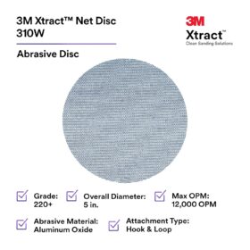 3M Xtract Net Disc 310W, 220+, 5 in, Die 500X, Pack of 50 Hook and Loop Sanding Discs, Virtually Dust-Free, Value Option for Metal, Wood, Composites, Stock Removal, and Fine Finishing