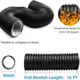 4 Inch 16FT Air Duct, Non-Insulated Flexible Aluminum Dryer Vent Hose for HVAC Ventilation?Fan Filter and Grow Tent, 2 Clamps Include