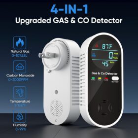 4-in-1 Upgraded Combination Natural Gas Leak Detector and Carbon Monoxide Detectors, Dual Sensor Gas Leak Detector & Carbon Monoxide Detectors Plug in (Temperature & Humidity Sensor) for Home, RV