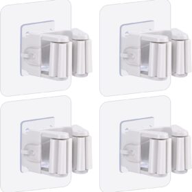 4- Pack Mop and Broom Holder Wall Mount, Broom Gripper Holds Self Adhesive No Drilling, Broom and Dustpan Hanger for For Home Garden Garage And Storage, 4 Packs