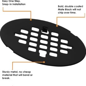 4 1/4 Snap-in Shower Drain Grate – Matte Black – Replacement Cover – VHI – Handyman Designed & Tested in America – Will Never Bend or Break
