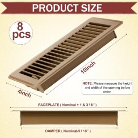 4 x 10” Floor Vent Covers Heavy Duty Floor Register Metal Heat Vent Covers with Rust Proof Finish for Home Floor Heater (Brown,8 Pcs)