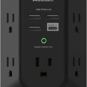 USB Wall Charger Surge Protector – Addtam 5 Outlet Extender with 4 USB Charging Ports (1 USB C), 3-Sided 1800J Power Strip Multi Plug Outlets Adapter Widely Spaced,Black