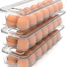 Utopia Home Egg Container With Lid and Handle for Refrigerator – Pack of 3 – Clear Stackable Egg Holder for Kitchen Storage and organization