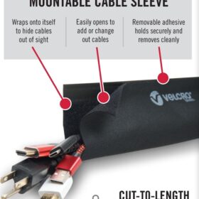 VELCRO Brand VEL-30797-USA Mountable Cable Sleeve | Cord Management Mounts on Walls, Desk or Entertainment Center | Removable Adhesive is Damage Free | 12in Black, 2pk, 12in-2Pk