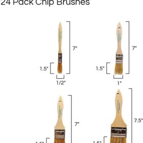Vermeer Chip Paint Brushes – 24-Pack Chip Brushes in Assorted Sizes for Paints, Stains, Varnishes, Glues, & Gesso – Home Improvement – Interior & Exterior Use