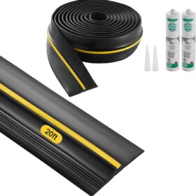 VEVOR Garage Door Threshold Seal Strip, 20 FT Universal Garage Door Floor Seal Strip with Adhesive, Garage Door Bottom Weatherproof Strip, Upgraded Thick PVC DIY Weather Stripping Replacement, Black