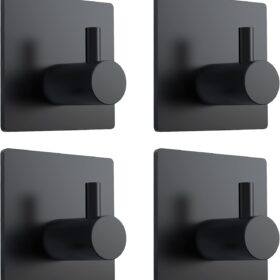 VIS’V Adhesive Hooks, Black Adhesive Towel Hooks Waterproof Self Adhesive Shower Wall Hooks Stainless Steel Stick on Hooks Heavy Duty Sticky Hooks for Bathroom Kitchen Livingroom Camper 4 Pcs