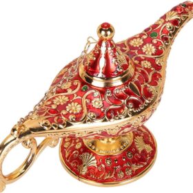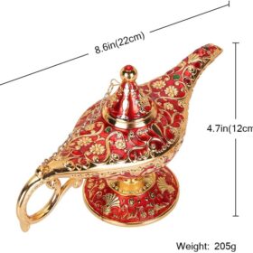 Vintage Aladdin Magic Genie Lamp Light for Home Party Wedding Table Decoration & Gift,Classic Zinc Alloy Arabian Lamp Jewelry Box?Gold & Red?
