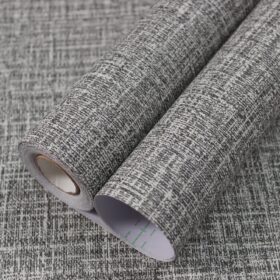 WADILE Grasscloth Peel and Stick Wallpaper 15.7in x 196.8in, Textured Contact Paper for Cabinets, Faux Linen Wall Paper Pull and Stick, Fabric Vinyl Wallpaper Self Adhesive Dark Gray