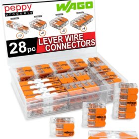 WAGO 221 Lever Nuts 28pc Compact Splicing Wire Connector Assortment with Case | Includes (8X) 221-2401, (8X) 221-412, (8X) 221-413, (4X) 221-415