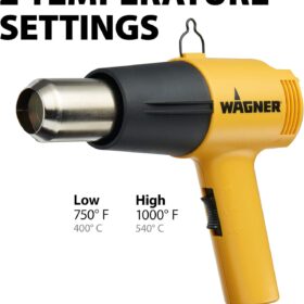 Wagner Spraytech 0503008 HT1000 Heat Gun, 2 Temp Settings 750?F & 1000?F, soften paint, caulking, adhesive, putty for removal, shrink wrap, bend plastic pipes, and loosen rusted nuts or bolts, Yellow