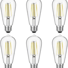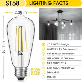 Vintage LED Edison Bulbs, 6W, Equivalent 60W, High Brightness Daylight 5000K, ST58 Antique LED Filament Bulbs with 90+ CRI, E26 Medium Base, Dimmable, Clear Glass, Pack of 6