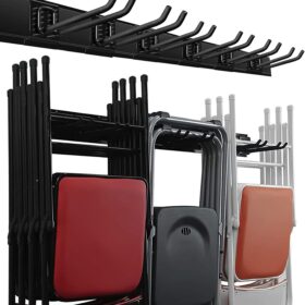 Wallmaster Garage Storage Organization Wall Mount, Garden Tool Rack Organizer Heavy Duty Folding Chair Hangers with 6 Adjustable Hooks 48inch Tracks Max Load 450lb