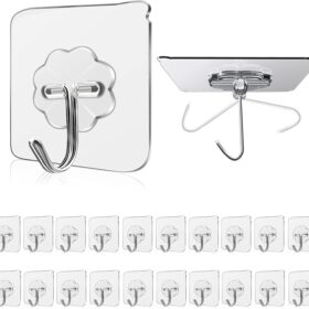 Wall Hooks 33 lbs(Max) Transparent Seamless Hooks for Hanging,Waterproof Oilproof Bathroom Kitchen Heavy Duty Adhesive Hooks,Coat Hooks, Utility Towel Bath Ceiling Hooks (20Pack)