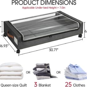 Yecaye Under Bed Storage with Wheels, 2Pack Under Bed Storage Containers, Under Bed Shoe Storage Organizer, Rolling Under Bed Metal Drawer for Clothes, Blankets(30.71 x 16.93 x 6.69 in)