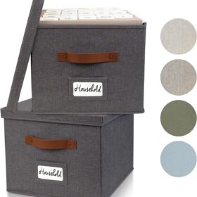 ZICOTO Decorative File Organizer Box Set of 2 – Collapsible Linen Filing Cabinets w/Handles Are Perfect to Store all Your Documents & Hanging File Folders – Portable Easy Slide Crates with Lid