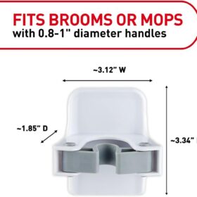 Command Broom and Mop Grippers, 2 Hangers and 4 Command Strips, Damage Free Hanging Wall Mount Broom and Mop Holder, Household Cleaning Organizer for Organization and Storage, Holds up to 4 lb