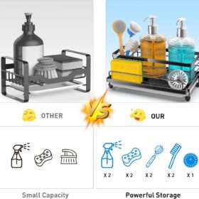 Cisily Sponge Holder for Kitchen Sink, Sink Caddy with High Brush Holder, Kitchen Sink Organizer Countertop Rustproof 304 Stainless Steel, Soap Dispenser Kitchen Organizers and Storage Essentials
