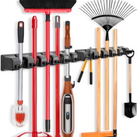 HYRIXDIRECT Wall Mount Broom Mop Holder Hanger Garden Tool Organizers Rack Garage Laundry Room Organizations and Storage with Hooks Heavy Duty