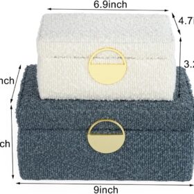 HofferRuffer Velvet Jewelry Boxes, Keepsake Boxes Decorative Boxes, Storage Accessory Organizer Boxes with Elegant Handle Decor, Classic Velvet Set of 2 Pieces (Modern)