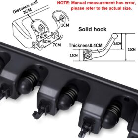 IMILLET 2 Pack Mop and Broom Holder, Wall Mounted Organizer Mop and Broom Storage Tool Rack with 5 Ball Slots and 6 Hooks (Black)