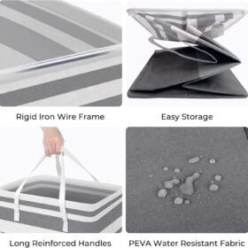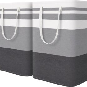 HomeHacks 2-Pack Large Laundry Basket, Waterproof, Freestanding Laundry Hamper, Collapsible Tall Clothes Hamper with Extended Handles for Clothes Toys in the Dorm and Family-(Gradient Grey, 75L)