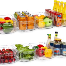 HOOJO Refrigerator Organizers and Storage – 8pcs Clear Plastic Bins For Fridge, Freezer, Kitchen Cabinet, Pantry Organization, BPA Free Fridge Organizer, 12.5