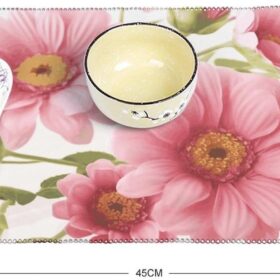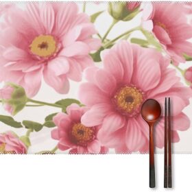 Pink Flowers Placemats Set of 4 Foldable Placemats Washable Wipeable Placemat Rectangular Table Mats Coffee Time Placemats for Kitchen Dining Table Decoration