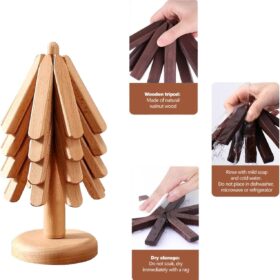 Natural Wooden Tree-Shaped Heat Insulation Pad Minimalist Nordic Design Trivet for Hot Pots and Dishes, Elegant Decorative Table Accessory, Durable Handmade Wooden Kitchen Tool (Natural Color)