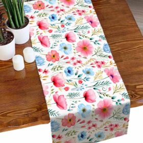 Pink Blue Flower Table Runner 36 Inches Short, Vintage Floral Spring Botanical Plant Linen Small Kitchen Dining Coffee Table Runners Dresser Décor, Burlap Tabletop Runner for Table, Wedding, Party
