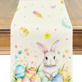 Patio Choice Easter Bunny Eggs Table Runner 72 Inches Long for Dining Table,Spring Seasonal Kitchen Table Decorations for Indoor Outdoor Home Party Decor