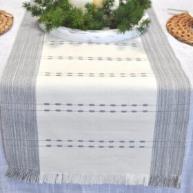 Organic Cotton Woven Stripe Table Runner with Fringe Rustic Farmhouse Cloth Dining Table Runner for Kitchen Buffet Table Boho Dresser Scarf Non Slip Washable Ombre Texture Grey / Off White 14