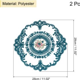 uxcell 2Pcs Retro Lace Placemats, French Crochet Doilies Round Embroidered Hollow Cup Vase Table Mat for Dining Table Kitchen Party 11.02×11.02inch, Green