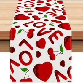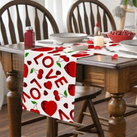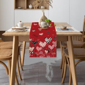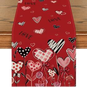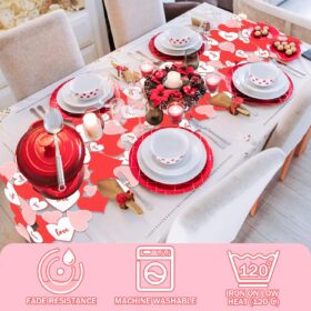 Valentines Day Decor Love Sweet Red Heart Table Line for Wedding Anniversary Marriage Proposals Engagements Holiday Valentines Table Runners Rectangular Tablecloth Home Kitchen Dining Table Decoration