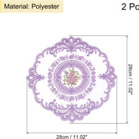 uxcell 2Pcs Retro Lace Placemats, French Crochet Doilies Round Embroidered Hollow Cup Vase Table Mat for Dining Table Kitchen Party 11.02×11.02inch, Purple