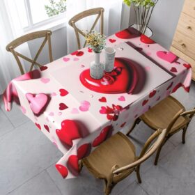 Valentine’s Day Print Table Cloth Rectangle Table Wrinkle Free Table Cloths for Parties, Kitchen Dining,Christmas