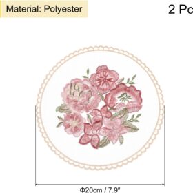 uxcell 2Pcs Retro Lace Placemats, French Crochet Doilies Round Embroidered Hollow Cup Vase Table Mat for Dining Table Kitchen Party 8x8inch, Dusty Rose
