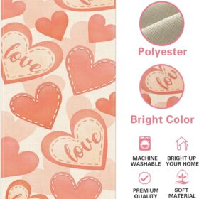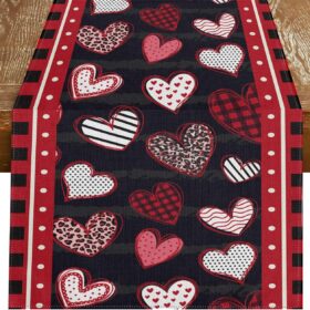 Valentines Day Table Decor Table Runner Romantic Love Heart Tablecloth – Polyester Rectangular Holiday Table Cover, 90x33cm/35x13inch Table Decor Wedding Kitchen Dining Table