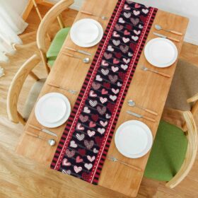 Valentine’s Day Table Runners 72 Inches Long, Eucalyptus Plaid Red Pink Love Heart Table Runner Anniversary Wedding Holiday Kitchen Dining Table Decoration for Indoor Outdoor Home Party Decor (#020)