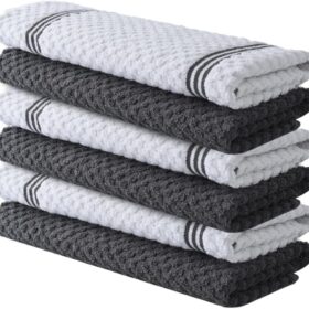 Homaxy 100% Cotton Waffle Weave Kitchen Dish Cloths, Ultra Soft Absorbent Quick Drying Dish Towels, 12 x 12 Inches, 6-Pack, Dark Grey