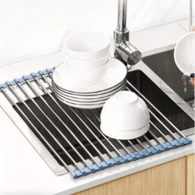 Over The Sink Dish Drying Rack, Roll Up Dish Drying Rack Kitchen Dish Rack Stainless Steel Sink Drying Rack, Foldable Dish Drainer, Gray