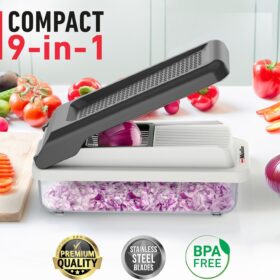 Mueller Vegetable Chopper 9 Blade, Mandoline Slicer, Food Veggie Chopper, Cheese Grater, Onion Vegetable Cutter with Container, Dicer, Kitchen Gadgets & Essentials, White Sand/Grey